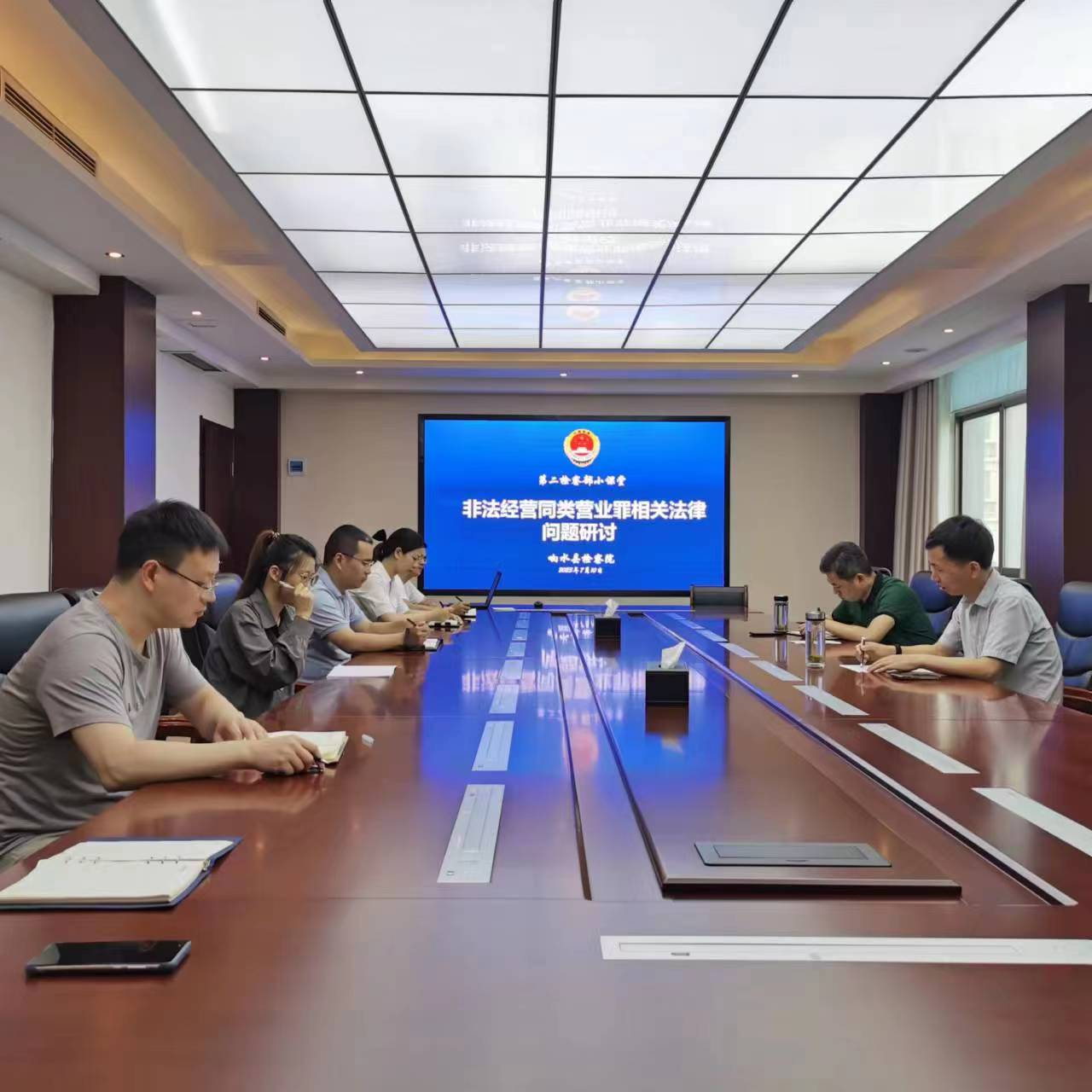 近日,我院第二检察部举行非法经营同类营业罪法律问题研讨暨“小课堂”活动,由院党组副书记、副检察长李富金主讲,院检委会专职委员罗飞及部门全体干警参加会议。